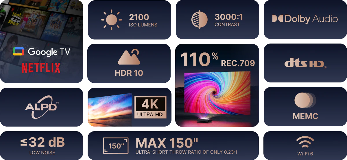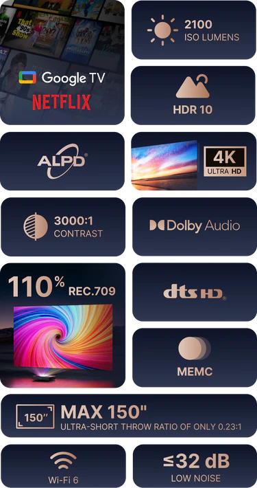 Direct access to Google TV with Netflix means you can watch all your favorite shows and movies straight from your projector, minimizing external devices.